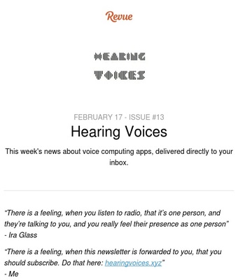 This week's news about voice computing apps, delivered directly to your inbox.