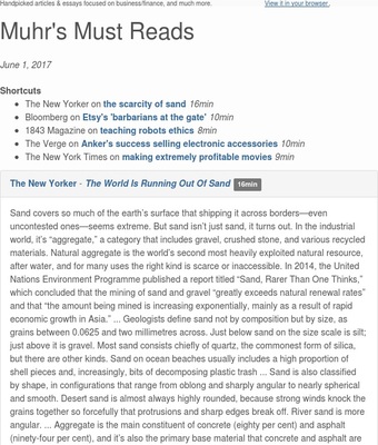 Relevant business & finance articles while frequently drifting to topics as sports, art & tech.