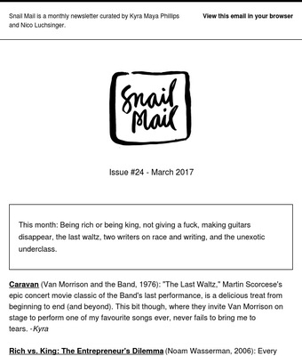 Snail Mail recommends content (at least a year old) that has had a lasting impact on them.
