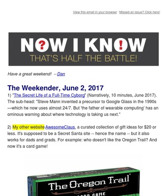 Learn something new every day! Dan Lewis shares fascinating facts and the stories behind them.