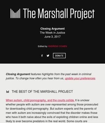 Receive the best criminal justice news from around the web, curated by Andrew Cohen.