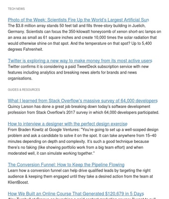 A weekly email of useful links for people interested in SaaS businesses, curated by Hiten Shah.