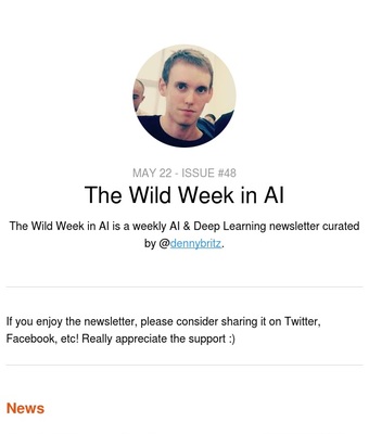 The Wild Week in AI is a weekly AI & Deep Learning newsletter curated by Denny Britz.