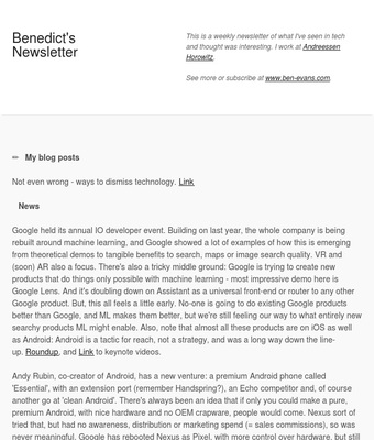 Benedict Evans shares his notes for the week, covering what he found interesting in tech and mobile.